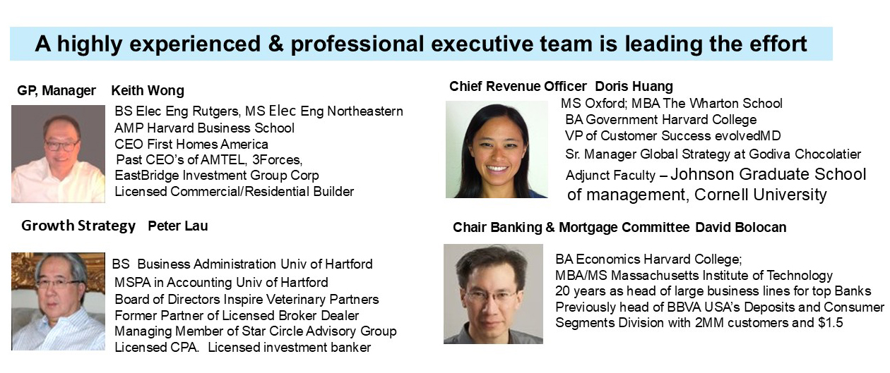 Our GP team is well versed in finding and managing special situation opportunities in the USA. We are all US citizens; one is a permanent HK resident. We are well trained in accounting, engineering, and finance. FUND INVESTS IN USA quantum computing – robotic AI – SPAC – REAL ESTATE